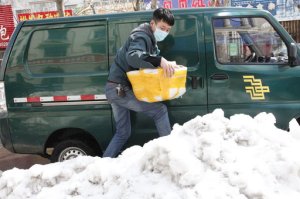 江蘇:金湖郵政迎風(fēng)冒雪保障防疫用品寄遞