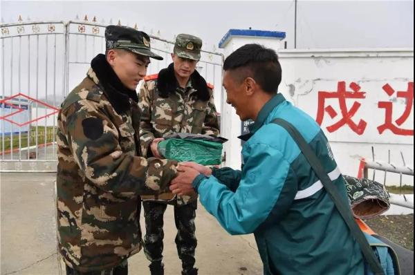 格桑次仁將快件送到官兵手中。