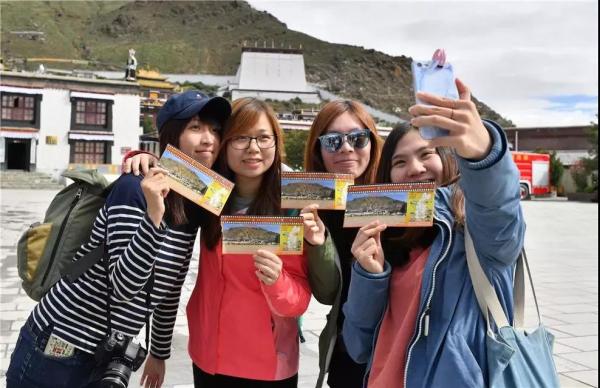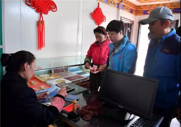 扎什倫布寺,來自香港的游客在展示中國郵政設(shè)計(jì)制作的景區(qū)門票。西藏郵政以深度融合西藏旅游文化、西藏民俗文化和郵政文化為核心,以郵政先進(jìn)的網(wǎng)絡(luò)、技術(shù)為支撐,服務(wù)景區(qū),服務(wù)游客,融入西藏旅游發(fā)展熱潮,助推西藏旅游經(jīng)濟(jì)的發(fā)展。