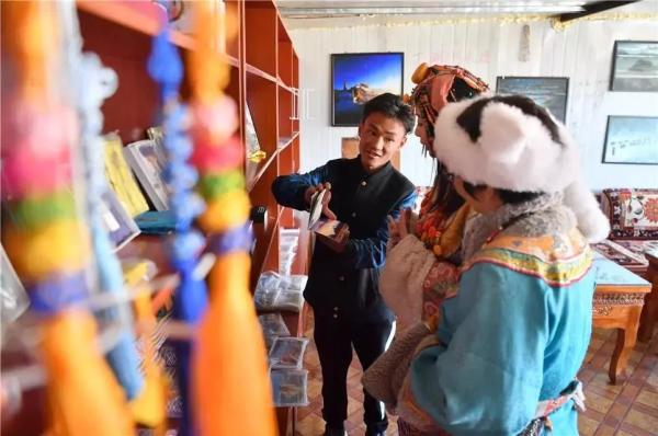 西藏自治區(qū)納木錯(cuò)自然保護(hù)區(qū)郵局,旦增洛珠(左)正在給游客介紹旅游產(chǎn)品。自農(nóng)村電商工作開展以來,西藏郵政已在全區(qū)各地(市)多個(gè)郵政營(yíng)業(yè)網(wǎng)點(diǎn)、便民服務(wù)站、小商超店、旅游景點(diǎn)等地建立“郵掌柜”、郵樂購、郵樂網(wǎng)、天上西藏E郵等網(wǎng)上購物和銷售系統(tǒng)。
