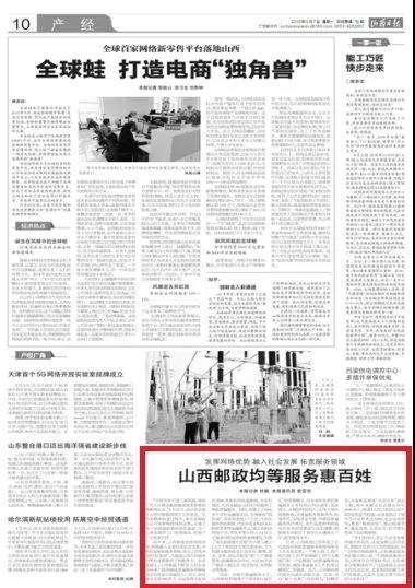 此外,山西郵政便民服務(wù)內(nèi)涵也逐漸豐富。比如,舉辦“愛心包裹”“母親郵包”捐贈活動;實(shí)施郵政寄遞“眾創(chuàng)眾享”創(chuàng)業(yè)工程,兩年來解決社會就業(yè)崗位2000余個;提速《人民日報》《山西日報》黨報黨刊投遞,全省縣級以上城市當(dāng)日見報率達(dá)100%,走在全國前列;聚焦“精準(zhǔn)扶貧”,推動臨猗蘋果、隰縣黃梨、大同京杏、忻州香瓜等農(nóng)產(chǎn)品銷售。