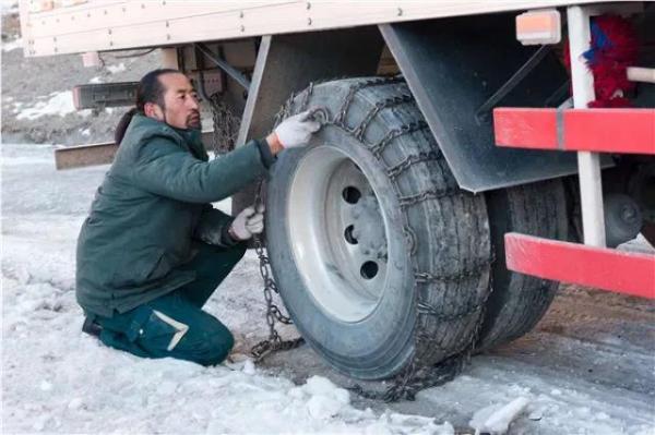 其美多吉在途中幫助社會車輛安裝防滑鏈