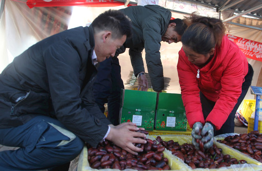 靈武長(zhǎng)棗上市,郵政員工幫裝箱。