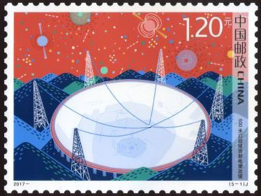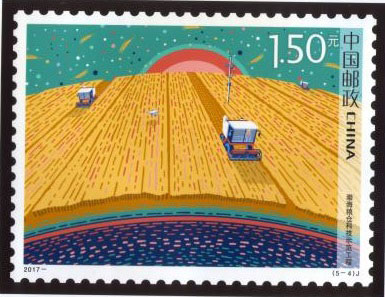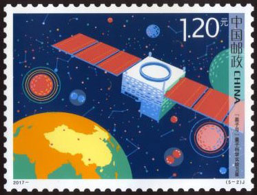 科技興則民族興,科技強則國家強。黨的十八大作出了實施創(chuàng)新驅動發(fā)展戰(zhàn)略的重要部署,科技發(fā)展進入了快車道。中國郵政于2017年9月17日發(fā)行《科技創(chuàng)新》紀念郵票1套5枚,圖案內容分別為:500米口徑球面射電望遠鏡、“墨子號”量子科學實驗衛(wèi)星、“探索一號”科考船、渤海糧倉科技示范工程、“神威·太湖之光”超級計算機。該套郵票由杜鈺凱設計。