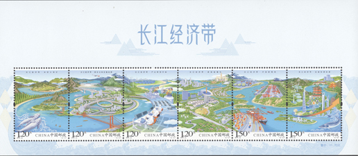 2018年8月26日,中國郵政發(fā)行《長江經濟帶》特種郵票1套6枚,小全張1枚。郵票圖案名稱分別為:共抓大保護、綜合立體交通走廊、產業(yè)轉型升級、新型城鎮(zhèn)化、開放新格局、區(qū)域協(xié)調發(fā)展。郵票以手繪方式生動展示了長江經濟帶全方位的發(fā)展成就。第一圖描繪了長江經濟帶共抓大保護的發(fā)展理念和美麗的自然生態(tài)。第二圖展現(xiàn)了長江經濟帶科學高效的綜合立體交通走廊。第三圖展示了長江經濟帶產業(yè)轉型升級,加速培育新動能。第四圖描繪了長江經濟帶以人為本的新型城鎮(zhèn)化。第五圖展現(xiàn)了長江經濟帶的開放新格局。第六圖描繪了長江經濟帶的區(qū)域協(xié)調發(fā)展。郵票設計者為鄒慶。