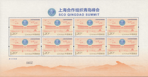 《上海合作組織青島峰會》郵票版式二(絹質品種)