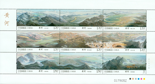 中國郵政于2014年8月23日發(fā)行《黃河》特種郵票1套9枚,郵票內容分別為:大河之源、九曲過城、塞上江南、河套穹野、壺口金濤、水環(huán)三晉、山攬河洛、中州水韻、河清海晏。郵票以九圖連票,全景呈現(xiàn)黃河流域的自然生態(tài)和歷史人文景觀,展示出黃河的磅礴外貌和深厚底蘊。該套郵票采用油畫的形式、散點式的構圖創(chuàng)作而成,和2014年發(fā)行的《長江》在風格、規(guī)制上形成“姊妹篇”。設計者袁加以極強的概括能力,將各種人文景觀、物質遺產和建設成就等穿插其間,猶如散布在母親河畔的珍珠,整體構成一幅熠熠生輝的圖景。