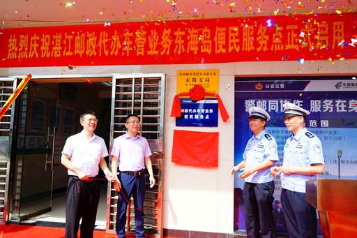 8月24日,廣東湛江郵政代辦車管業(yè)務(wù)東海島服務(wù)點(diǎn)揭牌,該服務(wù)點(diǎn)可以辦理補(bǔ)換領(lǐng)機(jī)動(dòng)車號(hào)牌、行駛證、駕駛證等業(yè)務(wù),車主或駕駛?cè)酥恍枥U納郵政快遞費(fèi)和車管牌證工本費(fèi),便可享受到“送證到家”服務(wù)。