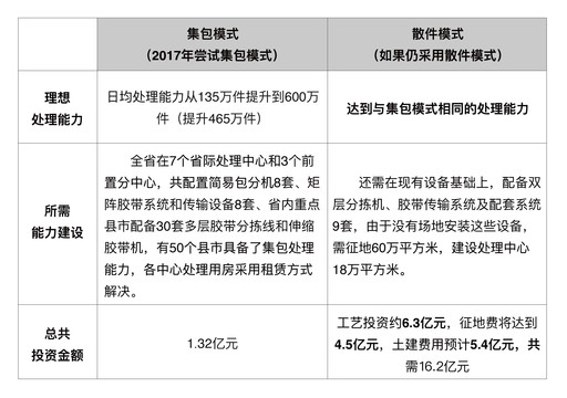 湖州申通常務(wù)副總經(jīng)理汪大海對記者說:“集包模式更適合輕小件的處理和轉(zhuǎn)運。如果要改用散件外送的模式,我們的處理能力至少要降低三分之一?!备鶕?jù)浙江郵政提供的一組數(shù)據(jù)(見圖2),如果郵政全面采用集包模式,不僅能縮短郵件處理時限,還能大幅降低企業(yè)成本。