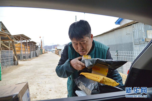 在琿春市春化鎮(zhèn),金仁哲在搬運(yùn)郵件。