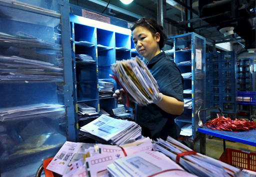 現代郵政自動化水平已經很高,但手工分揀仍然是必要和有益的補充,圖為郵件處理中心外景。