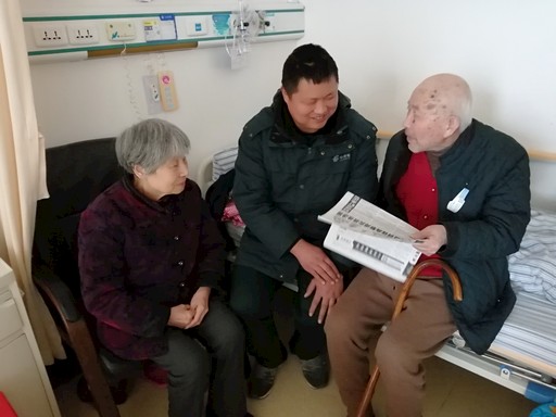 湖北省十堰市郵政分公司深入開展“比服務(wù)比質(zhì)量比貢獻(xiàn),爭創(chuàng)十星投遞員”活動(dòng),充分調(diào)動(dòng)投遞員爭先創(chuàng)優(yōu)的積極性和主動(dòng)性,使投遞服務(wù)質(zhì)量大幅提升。圖為三堰投遞站投遞員鄧大亮(中)為住院用戶送去當(dāng)日?qǐng)?bào)紙?!跬觚堷P 攝影報(bào)道