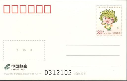 中國郵政于5月20日發(fā)行《中國2019世界集郵展覽吉祥物》普通郵資明信片一套1枚。明信片郵票規(guī)格為25毫米×30毫米,明信片規(guī)格為125毫米×78毫米。