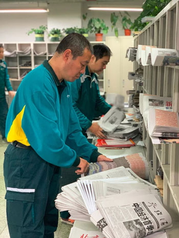 東四郵局北新橋投遞部已經分好的報紙(央廣記者 馮會玲攝)