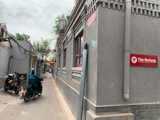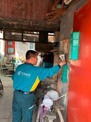 在胡同里送報紙和包裹的小梅(央廣記者 馮會玲攝)