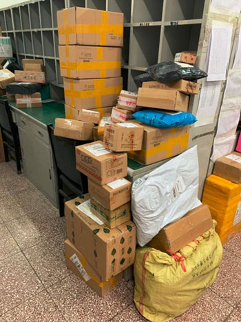 小梅每天上午送1100份報紙,下午送88份晚報,包裹每天數量不一,我跟著她的這天,上、下午加起來83個。小梅說,最高峰的時候可經常是100多個。