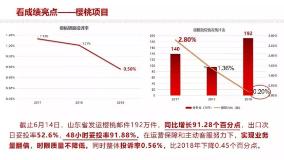 劉愛力還介紹了集團(tuán)公司自2019年初分階段啟動(dòng)寄遞網(wǎng)提速工作以來,三大重點(diǎn)管控區(qū)域取得的階段性成果,寄遞業(yè)務(wù)時(shí)限質(zhì)量有了大幅提升。