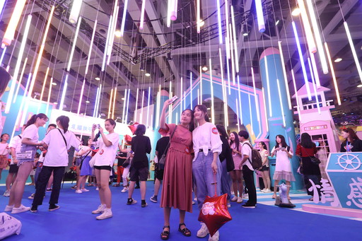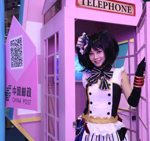 以淺藍(lán)、粉紅為主色調(diào)的郵政展區(qū)撥動(dòng)了無數(shù)少女的心,cosplay模特也前來體驗(yàn)。