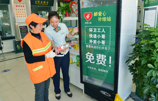 奔牛支局內(nèi)設(shè)有“郵愛心補給站”,免費為戶外工作者提供飲用水等解暑用品,用心擦亮郵政品牌。
