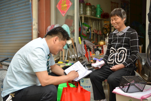 否定、完善,再否定、再完善,奔牛支局一路向好。圖為奔牛支局局長唐明走訪沿街商戶。