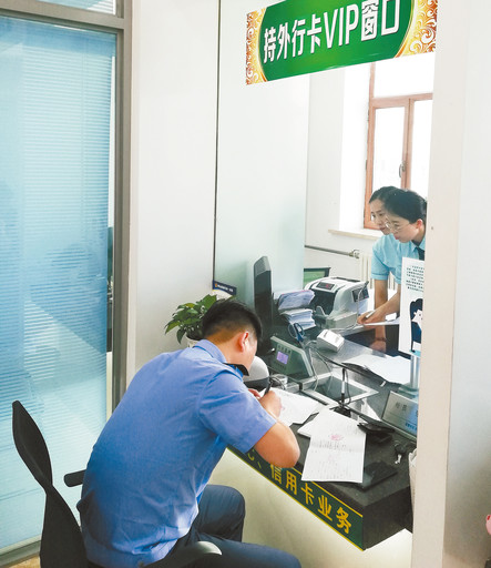 東郊營業(yè)所靠服務(wù)開拓市場,“來的都是客,服務(wù)不打折”,專門開設(shè)了“持外行卡VIP窗口”。寧國富 攝