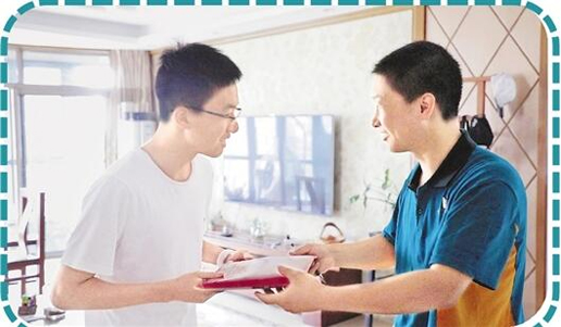 “這幾日,我早上7時(shí)就會(huì)過(guò)來(lái)準(zhǔn)備收件。暑期錄取通知書(shū)多,寄送要求高,要提前準(zhǔn)備,規(guī)劃路線(xiàn)。”董華遞來(lái)兩套工作服,按照約定,我們要跟著他送件一天。