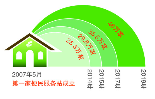 便民服務站是中國郵政利用互聯(lián)網(wǎng)技術(shù)創(chuàng)建服務民生的重要平臺。它以較低的成本,將郵政業(yè)務方便、快捷地延伸到社會各個角落;為百姓提供繳費、票務、報刊等家門口的便捷多功能服務。2007年5月,第一家中國郵政便民服務站在福建設立。經(jīng)過十幾年的發(fā)展、建設,目前已達48萬家,樹立起了“中國郵政便民服務”的品牌。