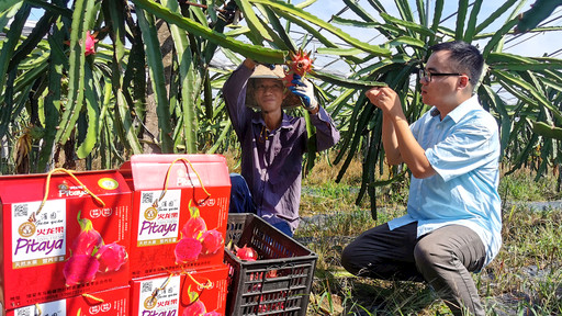 針對“919電商節(jié)”,浙江省瑞安市郵政分公司馬嶼營業(yè)部員工提前走訪火龍果種植戶,將火龍果引入郵政電商平臺,幫助農(nóng)戶銷售。郵政員工還協(xié)助農(nóng)戶進行火龍果采摘、裝箱、稱重、裝車工作,為火龍果線上銷售、線下寄遞打通“綠色通道”。截至9月15日,瑞安市分公司已“銷售+寄遞”火龍果3000件。圖為郵政員工在果園協(xié)助農(nóng)戶采摘火龍果?! 醯椰?nbsp; 攝影報道