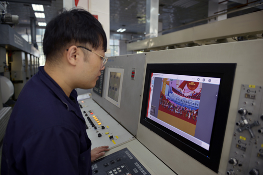 北京郵票廠工作人員謹(jǐn)慎地操作著設(shè)備,力求將郵票完美呈現(xiàn)。邸亞崢 攝