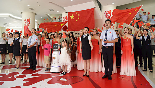 “我和我的祖國,一刻也不能分割,無論我走到哪里,都流出一首贊歌”……在慶祝新中國成立70周年之際,郵儲銀行海南省分行黨委組織全行員工與重點客戶以“快閃”形式共同演唱《我和我的祖國》,以此歌唱偉大祖國,鼓舞全行員工在奪取全面建成小康社會新勝利和海南自貿區(qū)(港)建設的偉大進程中作出新的貢獻?! 鹾D嫌浾?nbsp; 梁磊 攝影報道