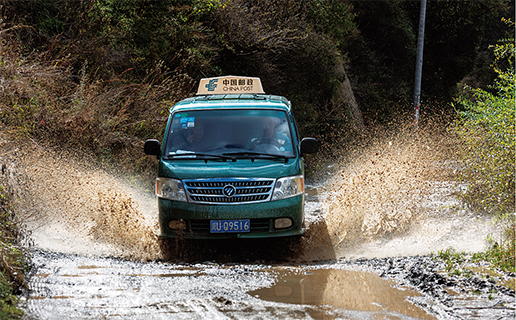 每到雨季,高原牧區(qū)坑坑洼洼的土路就變成了連片的水坑,郵車根本無法擇路而行,隨時都有可能陷進水坑。
