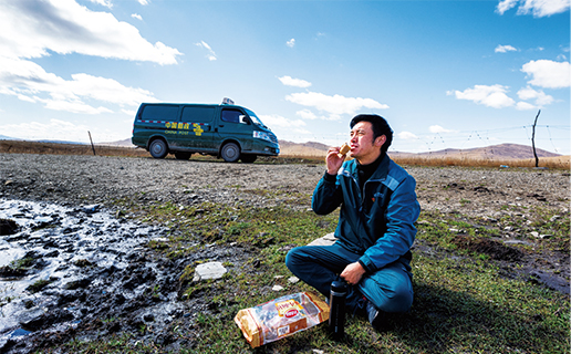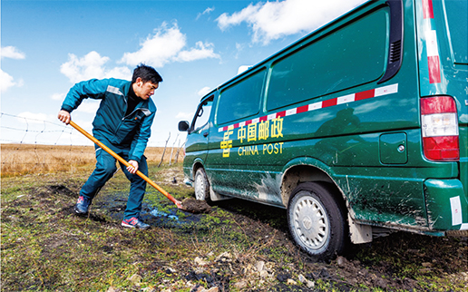 “夏天還好點,冬天最讓人惱火?!惫獖Z機說,若爾蓋一年中大半時間都在下雪,茫茫大草原上寒風(fēng)刺骨,道路積雪結(jié)冰,車輛經(jīng)常會滑下路基或陷進雪坑。在紛飛的大雪中出班,擋風(fēng)玻璃結(jié)冰,雨刮器被凍住,只能走走停停,不時除去擋風(fēng)玻璃上的冰雪,10多公里的投遞路往往要走一個多小時。