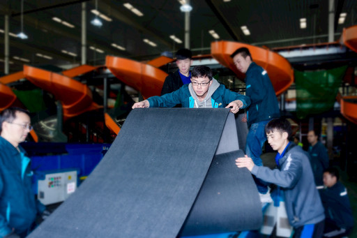 該處理中心非常重視設(shè)備維護(hù),近期對車間內(nèi)的所有設(shè)備進(jìn)行地毯式排查,確保旺季生產(chǎn)設(shè)備正常運(yùn)行。圖為設(shè)備維護(hù)人員正在更換伸縮膠帶機(jī)皮帶。 □談勇 攝影報道