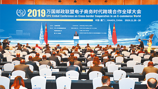 交流互通、開放共享。11月26日,2019萬國郵政聯(lián)盟電子商務(wù)時代跨境合作全球大會在福建廈門召開。這是萬國郵聯(lián)與中國聯(lián)合舉辦的首個以跨境電商全球合作為主題的大會,由萬國郵聯(lián)主辦,國家郵政局、中國郵政集團公司和廈門市政府聯(lián)合承辦。中國郵政集團公司董事長劉愛力出席開幕式并致辭。