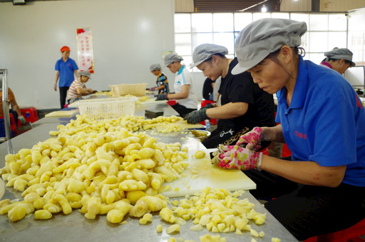廣西大新億春食品有限公司員工在加工生姜。