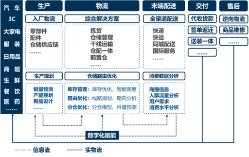 賦能源頭客戶打造服務(wù)生態(tài)。主流快遞企業(yè)聚焦汽車、3C、大家電等行業(yè),不斷拓展源頭戰(zhàn)略客戶,面向生產(chǎn)、銷售、倉干配、售后等環(huán)節(jié)提供數(shù)字化、綜合化物流解決方案。菜鳥提供商品生產(chǎn)規(guī)劃、銷售到流通、配送的數(shù)智化供應(yīng)鏈網(wǎng)絡(luò);京東物流搭建供應(yīng)鏈產(chǎn)業(yè)平臺實(shí)現(xiàn)數(shù)字化賦能產(chǎn)業(yè)供應(yīng)鏈服務(wù);順豐數(shù)據(jù)燈塔為行業(yè)商戶提供咨詢、分析、營銷、運(yùn)營等服務(wù)。(見圖10)