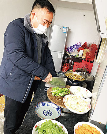 1月27日一大早,阮文學(xué)來到支局小食堂,和同事們簡單分工。有的去菜園子摘菜,有的從冰箱里拿出了年前備好的魚和肉,大家一起洗、切、炒、燉……11:00,熱騰騰的飯菜終于做好了。大家一起用保溫桶打包、備好碗筷,并將打好包的飯菜搬上阮文學(xué)的私家車,阮文學(xué)和王義勝一起開著車趕往高速路口的值守點(diǎn)。