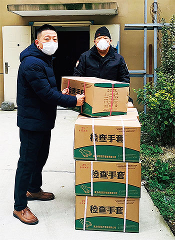 湖北省武漢市東西湖區(qū)郵政分公司市場營銷部經(jīng)理張虎張虎(左)搬運(yùn)醫(yī)療物資。