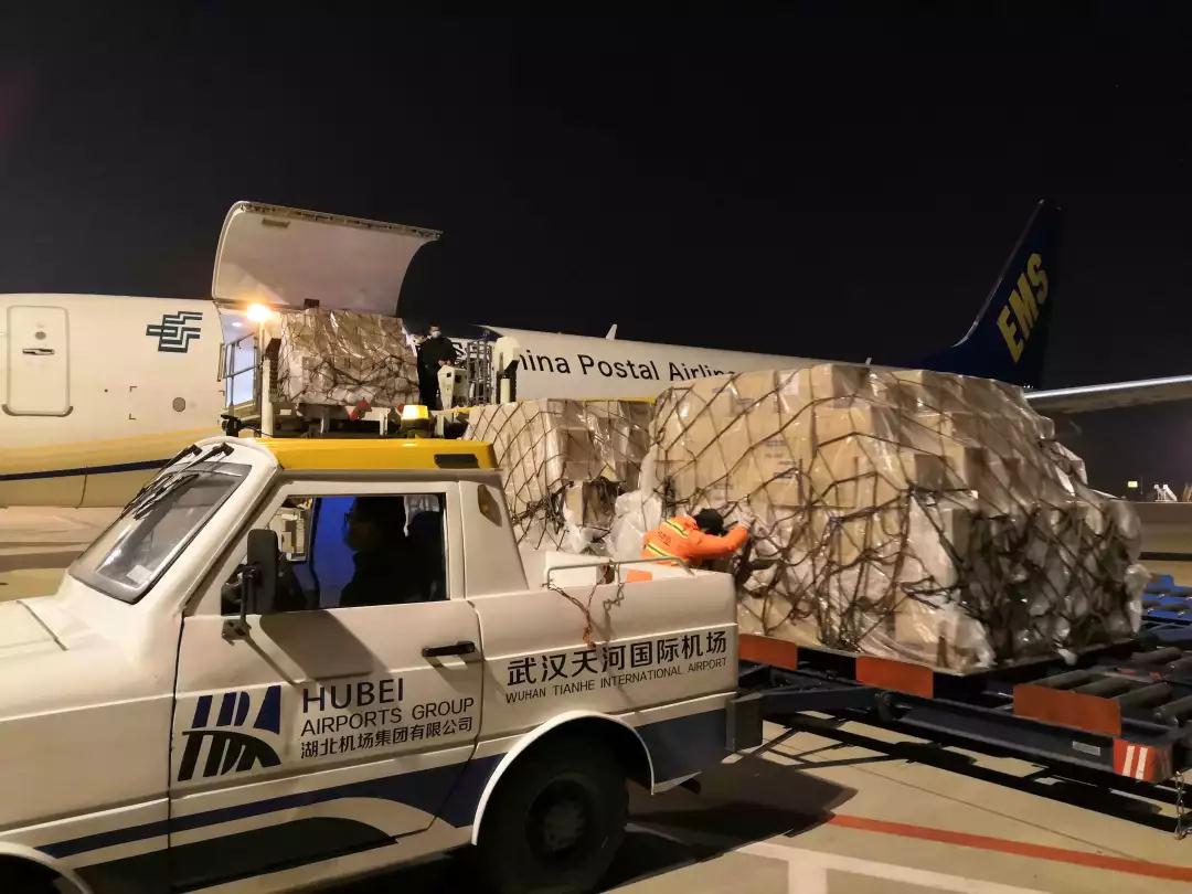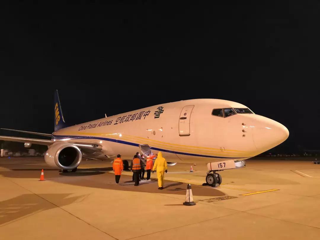 這架郵航專機運輸?shù)囊廊皇蔷惩饩柚姆酪哚t(yī)療物資,運輸指令于2月7日到達(dá)郵航。根據(jù)相關(guān)物資運抵上海時間的調(diào)整,郵航相關(guān)部門及時跟進,調(diào)整專機運輸實施方案。2月8日下午,在得到民航局方面批復(fù)后,郵航運行控制系統(tǒng)、飛行系統(tǒng)、機務(wù)系統(tǒng)、地面保障系統(tǒng)工作和相關(guān)防護工作迅速展開,為專機運輸防疫醫(yī)療物資空中快速通道的再次開啟而精心準(zhǔn)備。