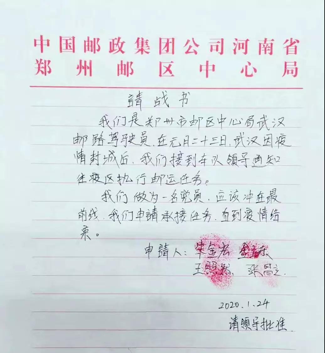 “這是1月23日武漢封城后,我第4次執(zhí)行往武漢運送醫(yī)療物資的任務。因為從回來后都要接受隔離觀察,吃住在單位,可能長時間都回不了家。為了大家的生命安全和身體健康,面對這項特殊的任務,我和王照然、朱金宏、金玉東等武漢郵路的黨員們一起向運輸中心黨支部遞交了請戰(zhàn)書,自愿承擔武漢郵運任務,直至疫情結束。從大年初一到現在,我已經一個星期沒有回家了,但是作為一名共產黨員,也是一名退伍老兵,我認為這是我應該做的。” 張昌立說。