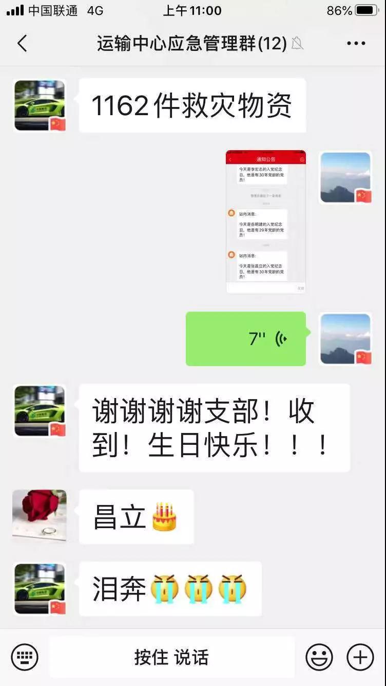 此刻,鄭州郵區(qū)中心局運輸中心黨支部一行人早已在郵車旁等候,準備為張昌立送上一份特別的“生日祝?!保阂粡堈紊召R卡、一束鮮花和幾句暖心的問候讓30年黨齡的老黨員張昌立熱淚盈眶。他激動地說:“作為一名共產黨員,面對疫情就應該沖鋒在最前線,請黨組織放心,我們一定會做好疫情防護,安全駕駛,堅決完成武漢郵路運輸任務,為黨旗增光添彩!”