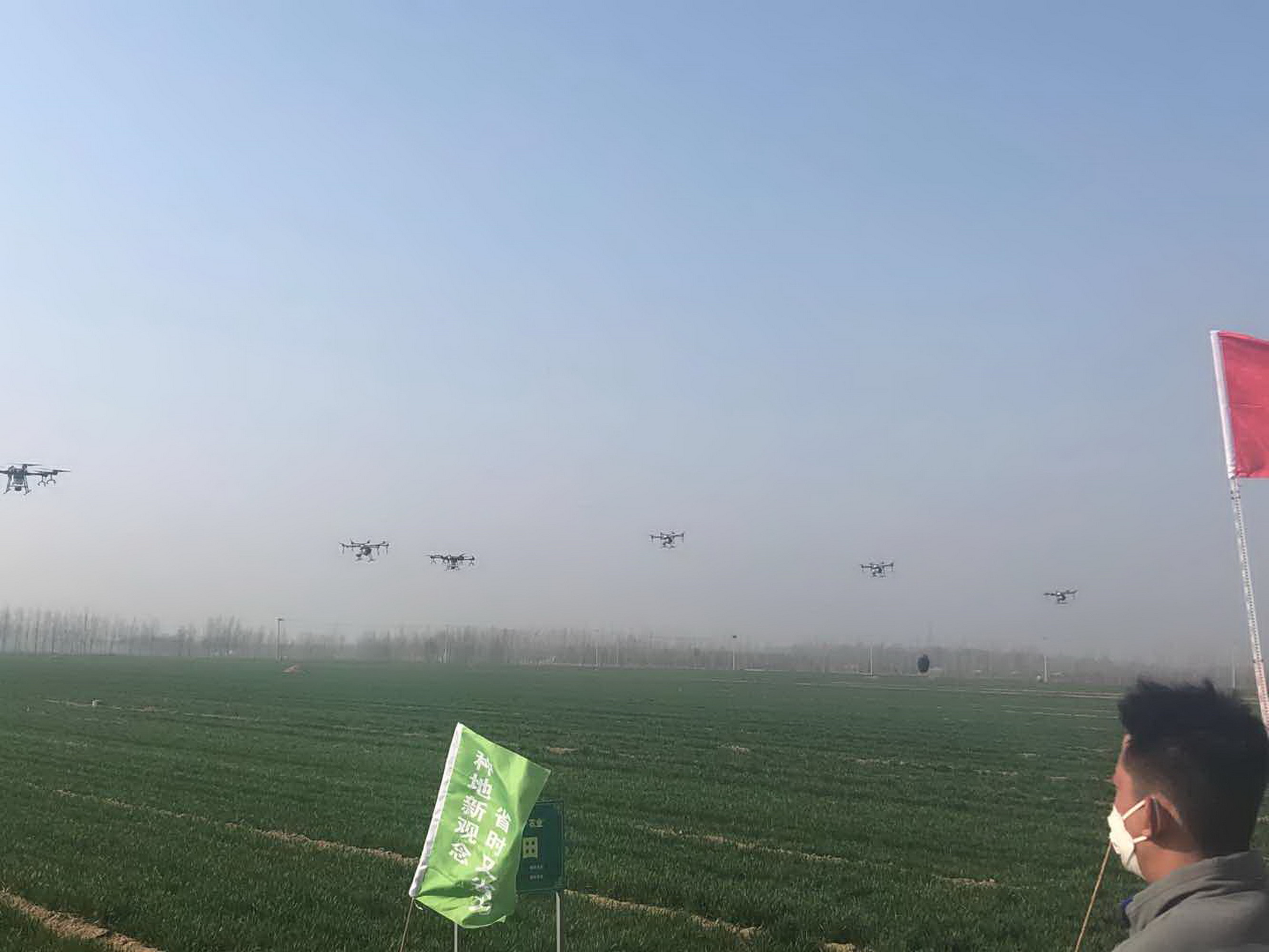 3月11日上午,山東聊城郵政在冠縣定遠(yuǎn)寨鎮(zhèn)舉行“戰(zhàn)疫情保春耕 郵農(nóng)場在行動”暨植保無人機(jī)飛防啟動儀式?,F(xiàn)場,11架無人機(jī)同時升空,展示了高效的飛防作業(yè)。