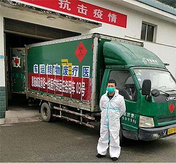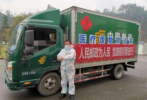 得知消息后,州郵政公司員工、退役軍人尹江、向耀俊、江道權做通家屬工作,主動要求參與轉運工作,火線組建突擊隊,駕郵車出征高危戰(zhàn)場,為定點收治醫(yī)院轉運醫(yī)療廢棄物。