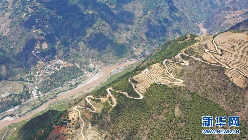 環(huán)繞高山峽谷的郵路(5月9日攝)。新華網(wǎng) 趙普凡 攝