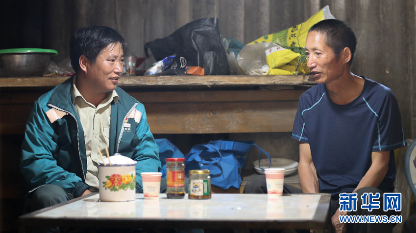 送件途中,桑南才在老鄉(xiāng)家休息,并了解老鄉(xiāng)的生產(chǎn)生活情況(5月11日攝)。新華網(wǎng) 趙普凡 攝