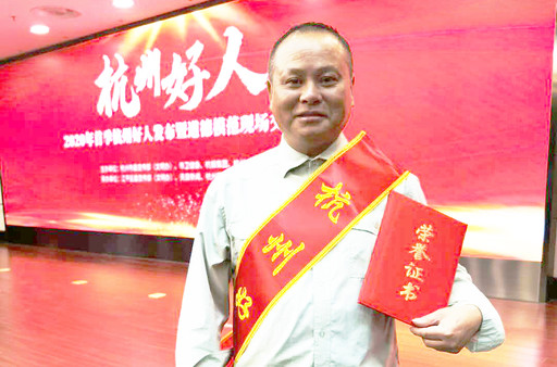 5月26日上午,浙江省杭州市余杭區(qū)郵政分公司良渚分局投遞員向達勇參加2020年首季“杭州好人”發(fā)布暨道德模范現(xiàn)場交流活動,并接受表彰。向達勇是湖南人,今年51歲,是余杭區(qū)良渚分局一名普通投遞員。2019年11月19日在投遞途中救起一位落水女子后默默離開。新華社、《人民日報》、央視新聞、浙江衛(wèi)視等十余家中央、省、市級媒體紛紛報道了《三年前兒子不幸溺水身亡 三年后他用臂彎托起一條生命》的文章,為向師傅的大愛點贊?! 蹴n穎 攝影報道