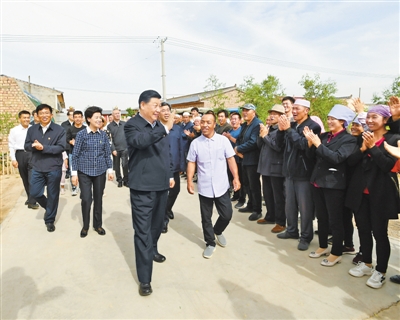 6月8日至10日,中共中央總書記、國(guó)家主席、中央軍委主席習(xí)近平在寧夏考察。這是6月8日下午,習(xí)近平在吳忠市紅寺堡區(qū)紅寺堡鎮(zhèn)弘德村看望移民搬遷群眾,向村民們揮手致意。 新華社記者 謝環(huán)馳攝