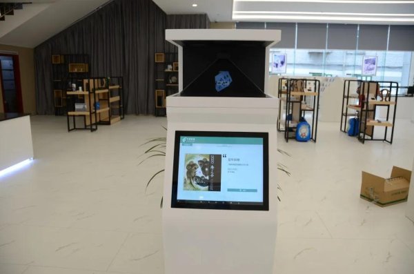 270°全息投影,可以通過點擊屏幕進(jìn)行互動,查看立體、有聲的集郵文創(chuàng)產(chǎn)品等