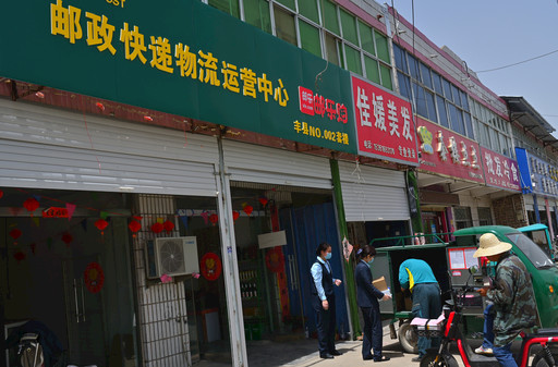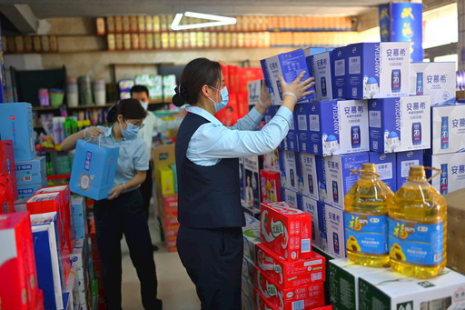 郵政員工在加盟店幫忙上貨。