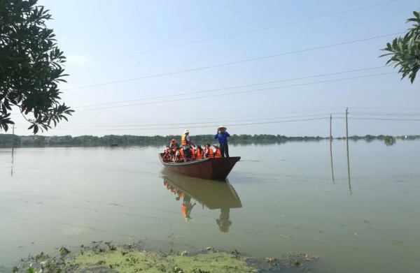 14日8:30,在臨時渡口,所有群眾排隊穿戴救生衣,在我們的指導下有序上船?!昂樗疅o情,郵政有情,你們真是好樣的!”“感謝你們?yōu)槲覀儽q{護航!”鄉(xiāng)親們對此很是支持,都說郵政干的是服務百姓的好事,我的心也暖暖的??粗鴿M載保障受災群眾生活物資的“郵船”,我感覺它似乎變得輕盈起來,駛過洪水漫過的蔬菜棚頂、劃過沒頂?shù)臉涔?,在洪流中破浪前行,全速前進。